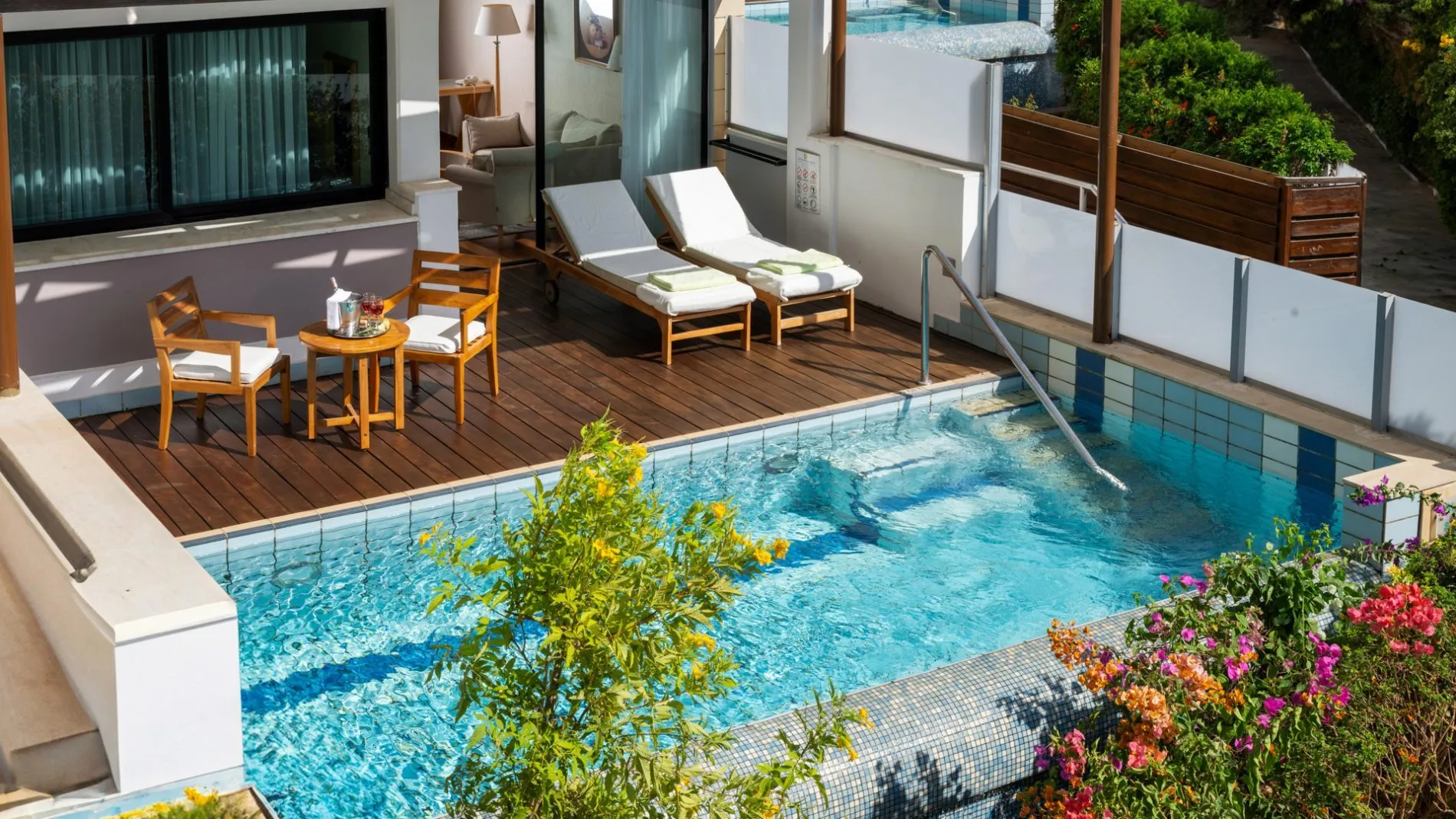 Ankommen Die perfekte Auszeit vom Alltag: Nach nur drei Stunden Flug und 20 Minuten Transfer stehen Sie am Strand von Paphos. Und beziehen eine der eleganten neuen Suiten (manche mit Pool) des charmanten Adults-only-Hotels.