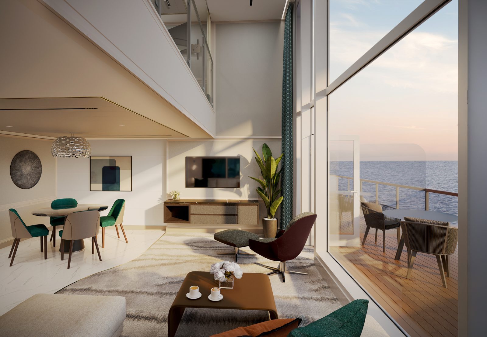 Träumen dürfen Sie übrigens jetzt schon: von zweistöckigen Suiten mit großen Fensterfronten, in denen ein eigener Aufzug zur privaten Dachterrasse führt. Oder gleich vom absoluten Highlight, der Skyview Regent Suite, die mit 817 Quadratmetern Fläche die größte Suite der Branche ist. Sie bietet nicht nur ein privates Spa und Fitnessstudio, sondern auch einen persönlichen Butler – und Landausflüge, bei denen Sie ein privater Chauffeur und Guide begleiten. Auch als Gäste der anderen Suiten-Kategorien werden Sie maximal verwöhnt: Kaum ein anderes Schiff verfügt über derart maßgeschneiderte Serviceleistungen und so viel Platz für den Einzelnen, auch in den privaten Räumlichkeiten, die sich sämtlich durch ihr raffiniertes Design auszeichnen.